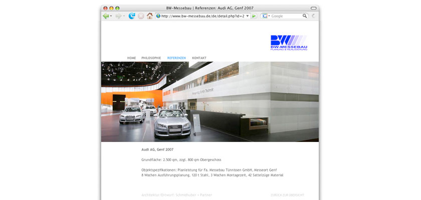 »BW-Messebau plant und realisiert Ihr Vorhaben. Nehmen Sie Platz an unserer Bar und lehnen Sie sich gemütlich zurück. Wir kümmern uns um alles, was mit Ihrer Präsentation zu tun hat. Genießen Sie unseren Sorgloscocktail aus Erfahrung, Ideen, Konzeptfindung, Produktion, Logistik, Montage/Demontage und Lagerhaltung.« Wo immer Sie VW, Audi, Lamborghini und Co. auf den Messen in Genf, Detroit, Frankfurt, Shanghai oder Tokyo sehen, hatten die Profis von BW-Messebau die Fäden in der Hand.