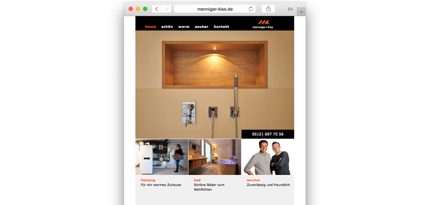 Ob Heizung, Solar oder neues Bad – menniger+kiss sorgen mit freundlicher Beratung, kompetenter Planung und solider Handwerksarbeit für ein warmes Zuhause und schöne Bäder in und um Hildesheim. Dabei legen die motivierten Profis von Oliver Menniger und Thomas Kiss besondere Aufmerksamkeit auf die individuellen Bedürfnisse, Wünsche und Möglichkeiten ihrer Kunden. Ihrem hohen Anspruch in Sachen Qualität, Zuverlässigkeit und Sauberkeit werden die Jungs immer gerecht.