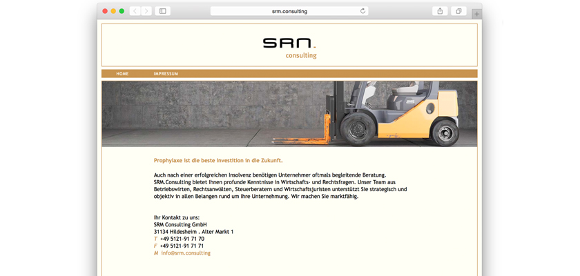 Signetentwicklung, typografische Konzeption, Geschäftsausstattung, Texterstellung, Beschilderung, Internet-Auftritt www.srm.consulting