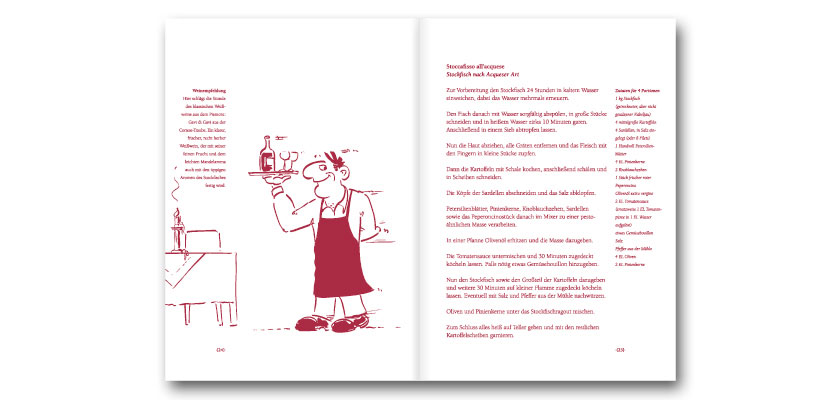 In diesem Band präsentiert Filomeno Tamilia vom Ristorante La Gondola seine persönlichen Lieblingsrezepte aus dem Piemont. Fünf Gutscheine zum ermäßigten Besuch des Restaurants sind inklusive. Die gut zwei Jahre – von der Idee bis zur Umsetzung – haben wir in bester kulinarischer Erinnerung. 54 Seiten, Hardcover, Fadenheftung, eingebrannter Falz.